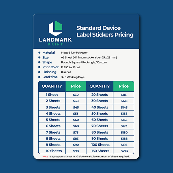 Sheet Size: A3 (minimum sticker size 25 × 25 mm)